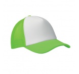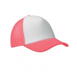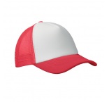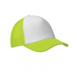 5 panelová trucker čiapka z polyesteru 140-150 g/m2, s nastavovacím plastovým patentným uzáverom. Biely predný panel a farebný priezor z polyesterového džerseja s penovým podkladom. Ostatné panely vo farbe sieťoviny. Veľkosť 7 1/4.