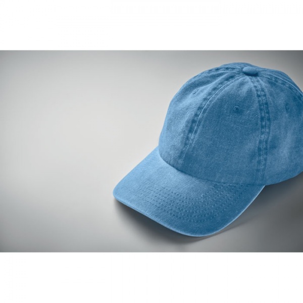 Vintage 6 panelová baseballová čiapka z pranej bavlny. Gramáž 265 g/m2˛ s nastaviteľným zapínaním na suchý zips. 6 prešitých očiek v rovnakej farbe. Veľkosť 7 1/4.
