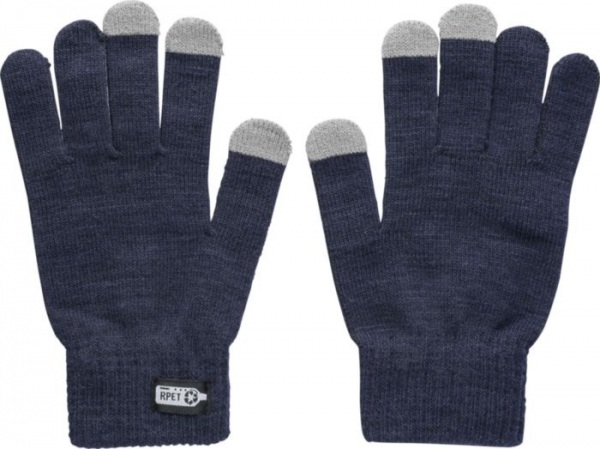 Rukavice na dotykovú obrazovku s vodivým povlakom na troch prstoch na prácu s obrazovkou. Vrátane štítku rPET na vonkajšej strane a štítku s informáciami o praní na vnútornej strane.