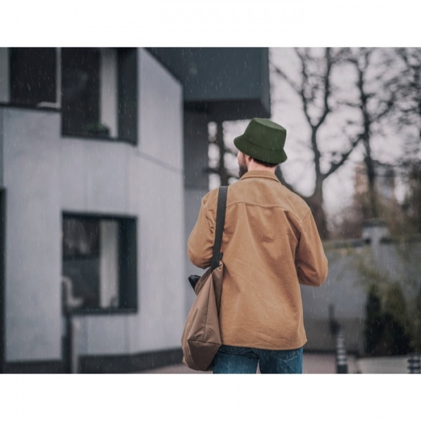 Klobúk Panama z recyklovaného polyesteru (100% rPET). Pohodlný, ľahký a praktický na každodenné nosenie, či už prší alebo svieti slnko.