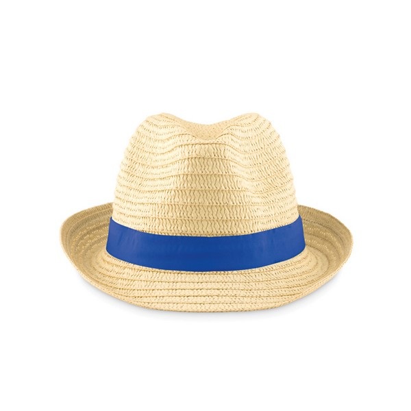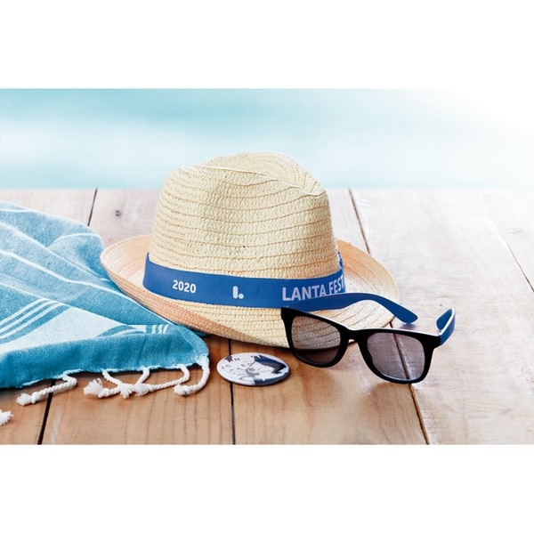 Slamený klobúk s farebnou polyesterovou páskou. Farebné pásky sú balené samostatne, nepripevnené na klobúku.