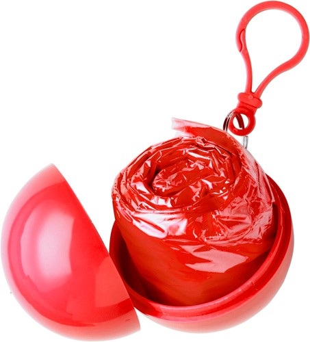 Pršiplášť v plastovej guličke s karabínkou.