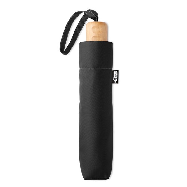 Manuálne skladací 21" dáždnik má 3-dielnu čiernu konštrukciu a drevenú rukoväť. Vrátane puzdra.