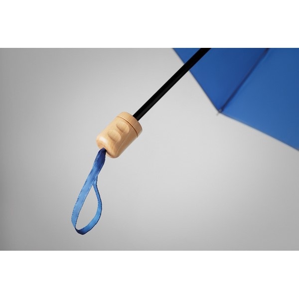 Manuálne skladací 21" dáždnik má 3-dielnu čiernu konštrukciu a drevenú rukoväť. Vrátane puzdra.