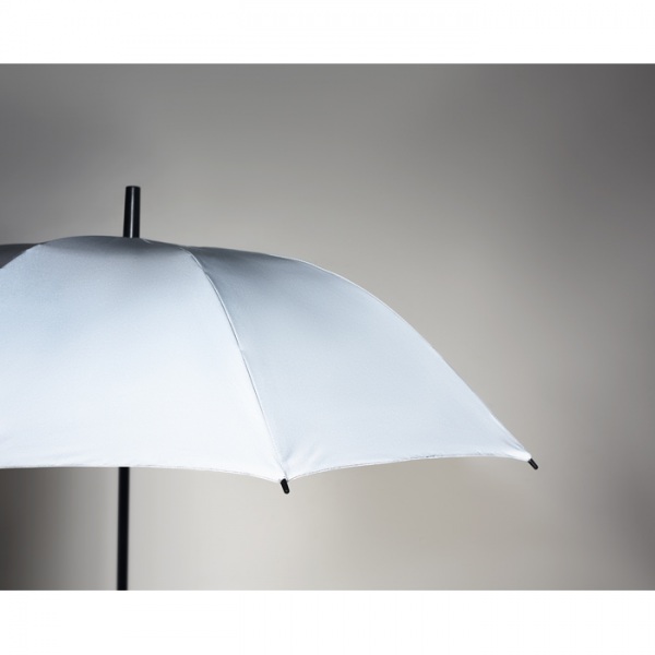 23 palcový manuálny dáždnik odolný proti vetru z vysoko reflexného polyesteru s rebrami zo sklenených vlákien. Čierne plastové hroty a hornú časť. Čierna pogumovaná rukoväť. Certifikované podľa EN13356.