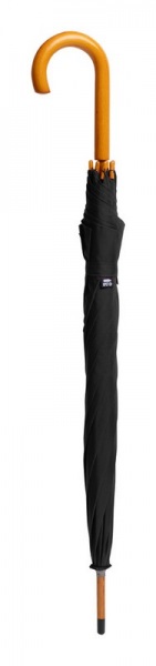 Automatický dáždnik s 8 panelmi, kovovým rámom, drevenou tyčou a rukoväťou.