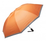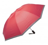 Plne automatický (otvorenie / zatvorenie) vetruodolný skladací dáždnik s 8 panelmi a reflexným olemovaním. Kovová tyčka, hliníkový rám, rebrá zo sklolaminátu a plastové držadlo. V rovnako farebnom obale s reflexnými páskami, 1900T pongee.