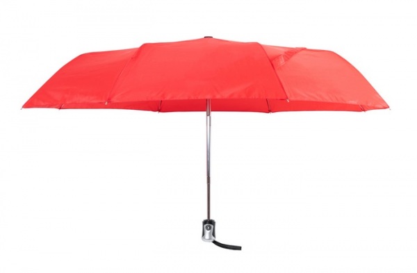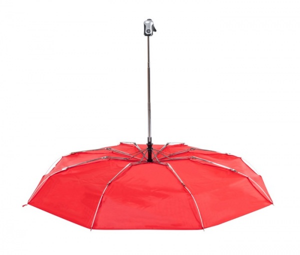 Plne automatický (otváranie / zatváranie), vetruodolný skladací dáždnik s 8 panelmi. S kovovou tyčkou, rámom z kovových / sklených vlákien a zodpovedajúcim farebným puzdrom a plastovou rukoväťou. 190T polyester.