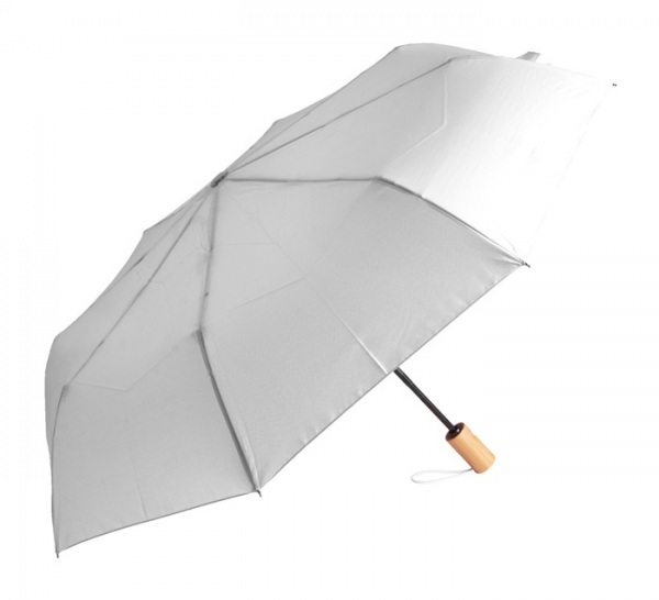 Plne automatický (open/close), vetruodolný skladací dáždnik s 8 panelmi v puzdre v zodpovedajúcej farbe. S kovovým rámom, sklolaminátovými rebrami a bambusovou rukoväťou. S výrazným štítkom RPET.