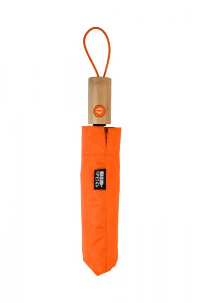 Plne automatický (open/close), vetruodolný skladací dáždnik s 8 panelmi v puzdre v zodpovedajúcej farbe. S kovovým rámom, sklolaminátovými rebrami a bambusovou rukoväťou. S výrazným štítkom RPET.