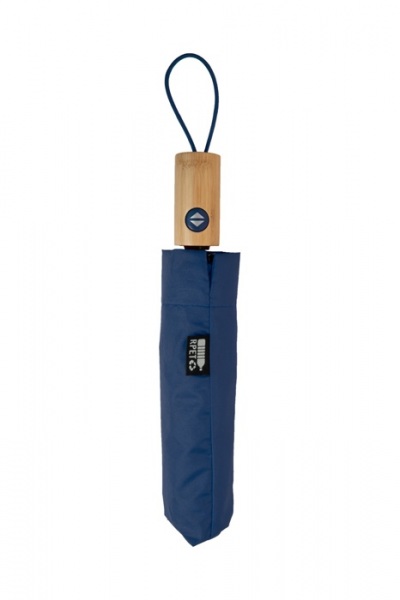 Plne automatický (open/close), vetruodolný skladací dáždnik s 8 panelmi v puzdre v zodpovedajúcej farbe. S kovovým rámom, sklolaminátovými rebrami a bambusovou rukoväťou. S výrazným štítkom RPET.
