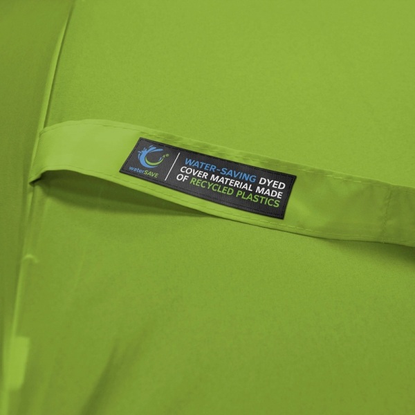 Automatická funkcia pre rýchle otváranie, vetruodolné prvky pre vyššiu flexibilitu a stabilitu rámu vo veternom počasí, flexibilné sklolaminátové rebrá, poťahový materiál z recyklovaných plastov, štítok waterSAVE®, drevené hroty, ochrana proti korózii