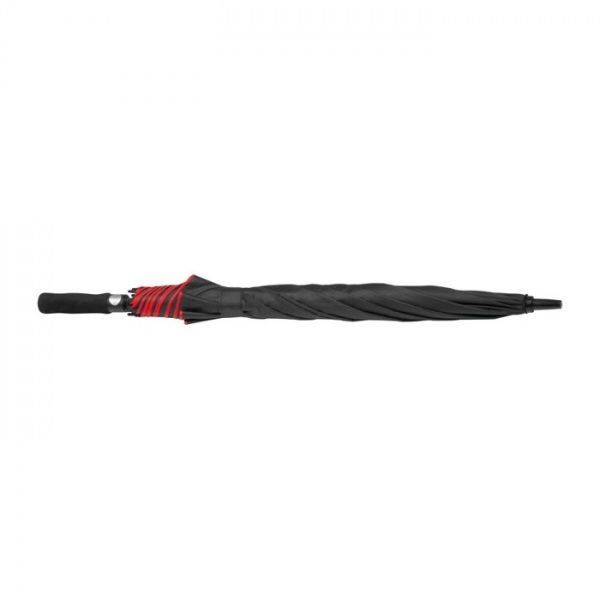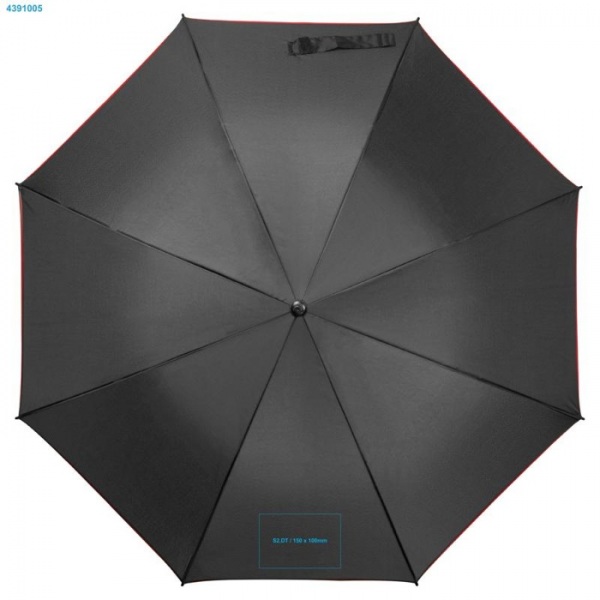 Čierny dáždnik z polyesteru 190T s farebným lemom, automatickým otváraním, tyčami zo sklených vlákien a mäkkou rukoväťou.