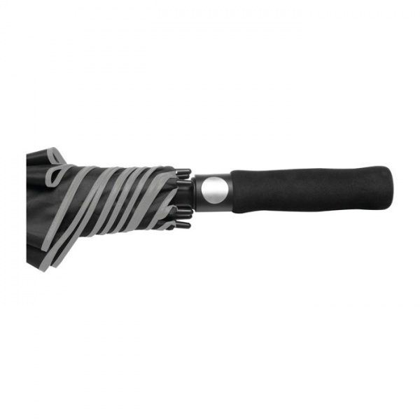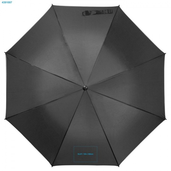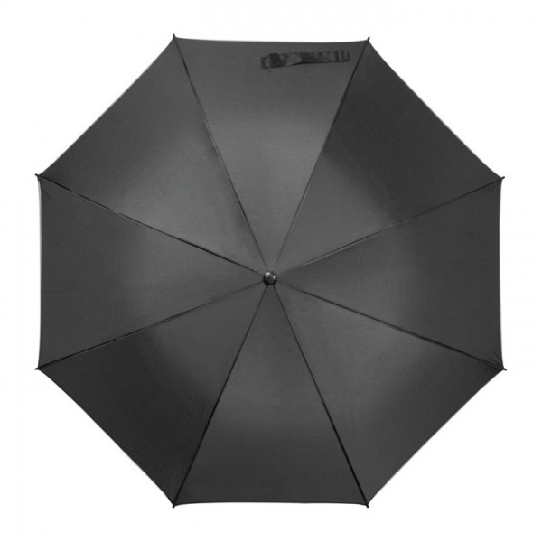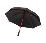 Čierny dáždnik z polyesteru 190T s farebným lemom, automatickým otváraním, tyčami zo sklených vlákien a mäkkou rukoväťou.