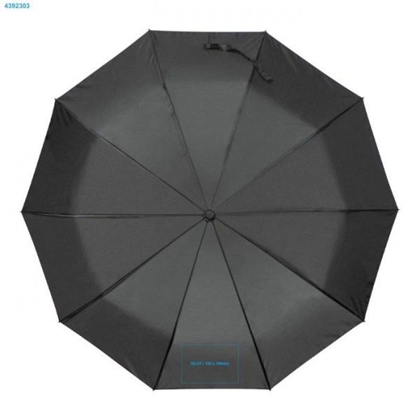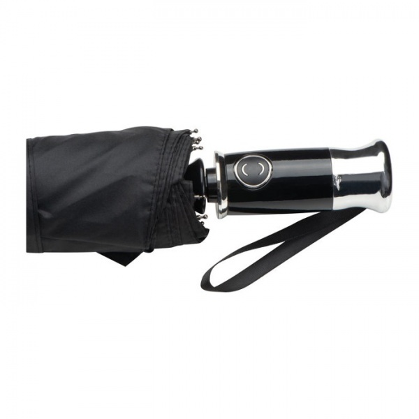 Vysokokvalitný vreckový dáždnik z polyesteru 190T s čiernym rámom zo sklených vlákien, elegantnou rukoväťou a zodpovedajúcim puzdrom. Automatické otváranie a zatváranie stlačením tlačidla.