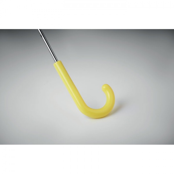 18-palcový detský dáždnik z 190T pongee s dúhovým vzorom. Má 8 panelov. Manuálne otváranie a zatváranie. Sklolaminátové rebrá a rám. Plastová zakrivený rukoväť a hroty.