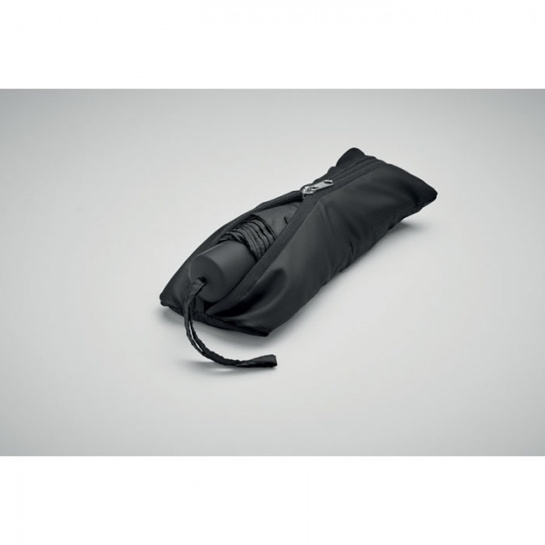 21-palcový 3-sekčný manuálny dáždnik odolný voči vetru. Zahŕňa vrecko na tašku. Má skrytú priehradku na zips na uloženie dáždnika a udržanie obsahu tašky v suchu. Keď sa taška nepoužíva, zroluje sa a priehradka na zips slúži ako puzdro na dáždnik.