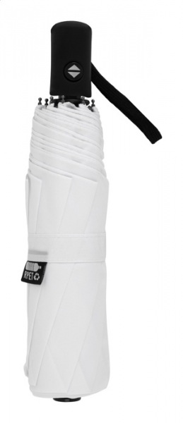 Plne automatický (otvoriť/zavrieť), vetruodolný skladací dáždnik s 8 panelmi v puzdre v zodpovedajúcej farbe. S kovovým rámom, sklolaminátovými rebrami a pogumovanou rukoväťou s pútkom na ruku. Pongee 190T RPET. S výrazným štítkom RPET.