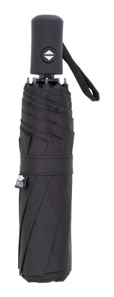 Plne automatický (otvoriť/zavrieť), vetruodolný skladací dáždnik s 8 panelmi v puzdre v zodpovedajúcej farbe. S kovovým rámom, sklolaminátovými rebrami a pogumovanou rukoväťou s pútkom na ruku. Pongee 190T RPET. S výrazným štítkom RPET.