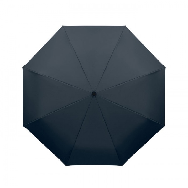 Skladací 21-palcový vetruodolný dáždnik s celočiernym pokovovaným rámom zo sklenených vlákien s 2 sekciami. Rebrá zo sklenených vlákien. Panely z 190T RPET pongee. Karabína v tvare D s gumenou úpravou. Automatické otváranie a zatváranie. Vrátane puzdra.