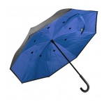 Manuálny vetruodolný dáždnik s reverzným otváraním, 8 panelmi, dvojvrstvovou strieškou, kovovým rámom, rebrami zo sklených vlákien a pogumovanou rukoväťou. 190T RPET pongee. S výrazným štítkom RPET.