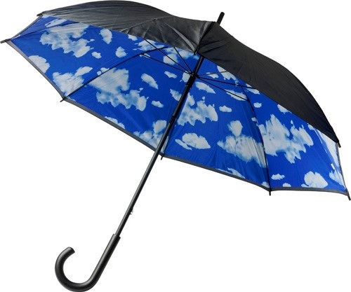 Nylonový (190T) manuálny dáždnik s potlačou na vnútornej strane. Dáždnik má kovový rám a drevenú rukoväť. Priemer dáždnika 105cm.