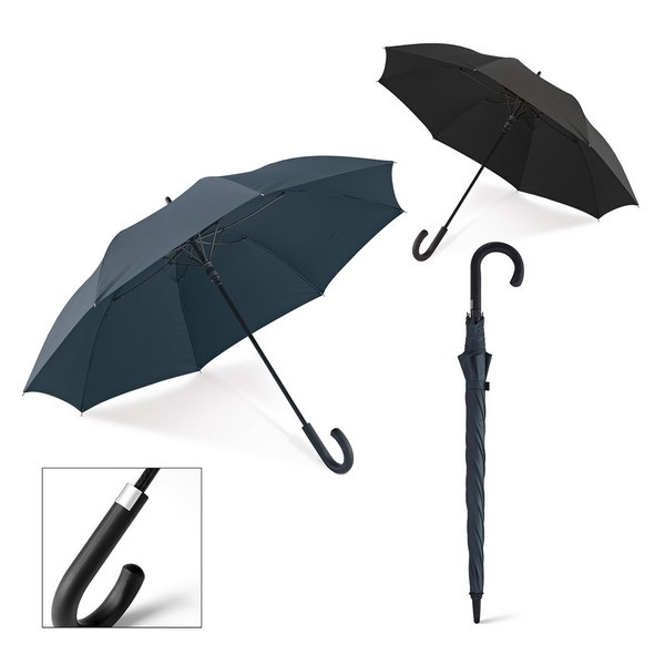Dáždnik z ponžé 190T s konštrukciou z laminátu a s rukoväťou potiahnutou gumou. Dáždnik je odolný voči vetru a má automatické otváranie.