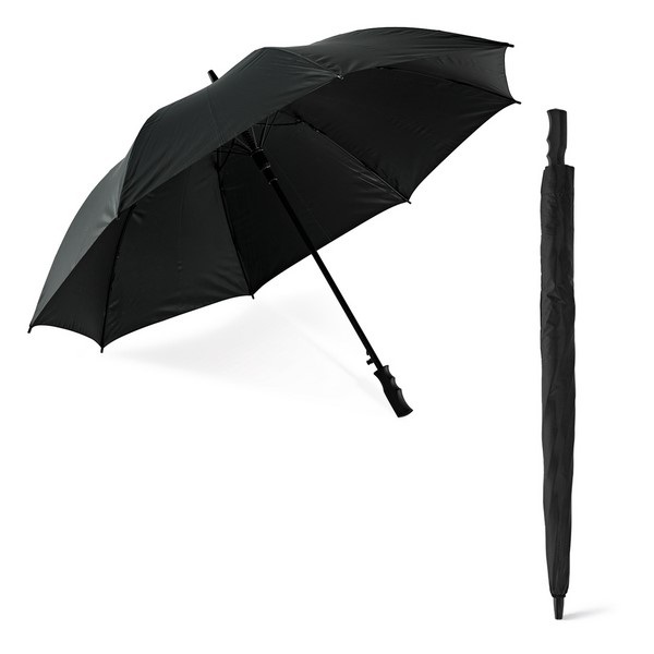 Golfový dáždnik z polyesteru 190T s laminátovým držadlom, rebrami a rukoväťou z PP. Dáždnik je odolný voči vetru a má automatické otváranie. Výrobok sa dodáva v puzdre. Priemer dáždnika 122cm.