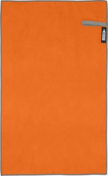 Športový uterák veľmi dobre saje, je ľahký, rýchlo schne a tkanina je odolná a extrémne mäkká. Vyrobený z 90% GRS RPET a 10% nylonu a možno ho prať v práčke na 40 °C. Dodávané s úložným vreckom (15,5 × 10 cm) vyrobeným z recyklovaného PET plastu