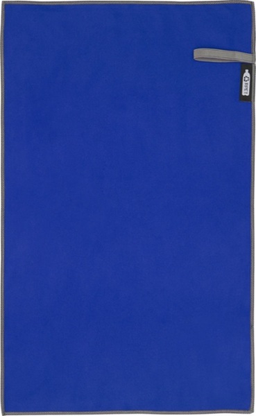 Športový uterák veľmi dobre saje, je ľahký, rýchlo schne a tkanina je odolná a extrémne mäkká. Vyrobený z 90% GRS RPET a 10% nylonu a možno ho prať v práčke na 40 °C. Dodávané s úložným vreckom (15,5 × 10 cm) vyrobeným z recyklovaného PET plastu