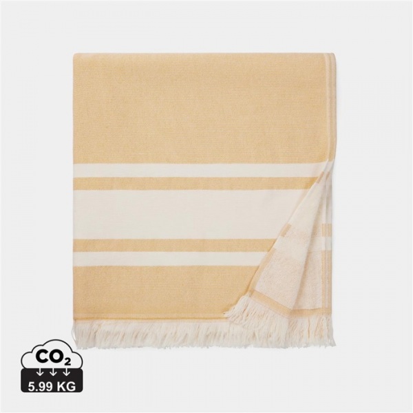 Na jednej strane froté, na druhej strane plátnová väzba. Vyniká vysokou savosťou a rýchlym schnutím. Rozmer: 180 x 80 cm (bez strapcov na koncoch). OEKO-TEX® STANDARD 100. 09.HIN.68091. Hohenstein HTTI.