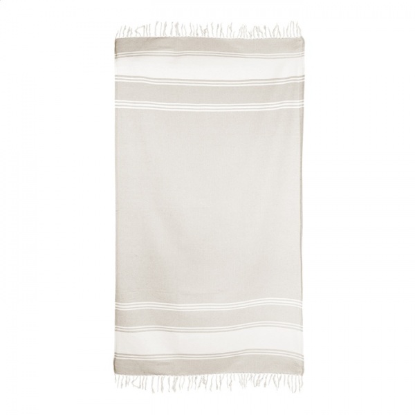 Dvojfarebný pruhovaný plážový uterák pareo zo 70% bavlny a 30% polyesteru. 210 g/m2.