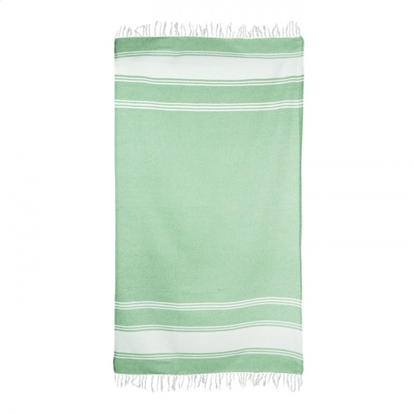 Dvojfarebný pruhovaný plážový uterák pareo zo 70% bavlny a 30% polyesteru. 210 g/m2.