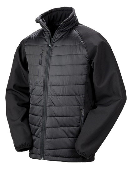 Rukáv: 2-vrstvový softshell 280 g/m2 | Odolný voči prehánkam a vetru | Priedušné | Kontrastné vrecká na zips | Zips YKK s ochranou brady | Polstrovaný stojačik a telo | Mäkká manžeta | Čierne šnúrky | Funkčný rec. materiál | Potlačiteľné ramenné panely