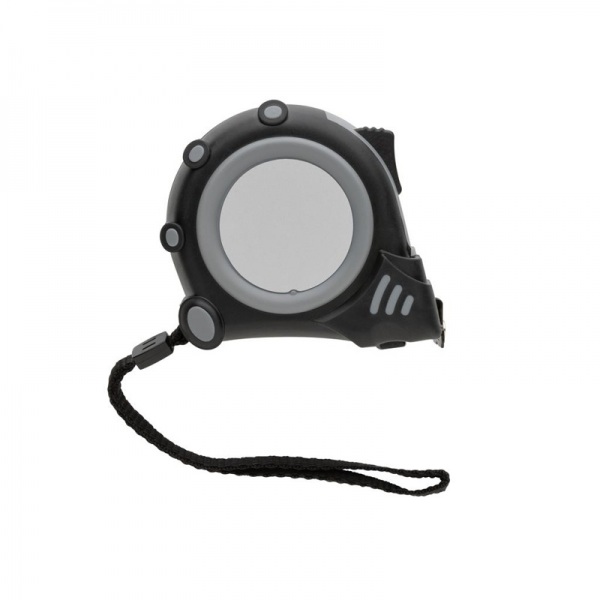 Zvinovací meter z RCS recyklovaného ABS plastu. Celkový podiel recyklátu: 15%. 19 mm žlté pásmo s oceľovým háčikom a 2 integrovanými magnetmi. TRP úprava pre pohodlný úchop, pútko na zápästie, tlačidlo na uzamknutie/uvoľnenie. Balené v FSC® krabičke.