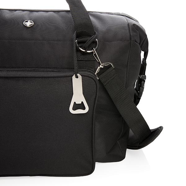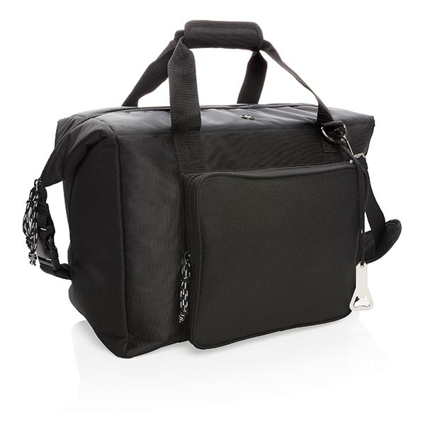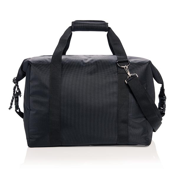 Polyesterová prenosná termotaška Deluxe 1680D a 600D s extra veľkým hlavným priestorom na zips a predným vreckom na zips. Tašku môžete ľahko premeniť na chladiace vrecko uzavretím bočných popruhov. Obrovský 40l úložný priestor.