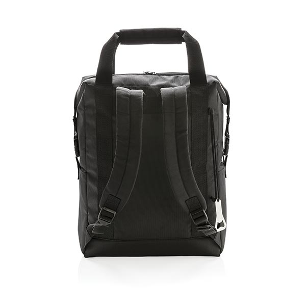 Termotaška z kvalitného polyesteru 1680D a 600D. Objemný hlavný oddiel na zips a predné vrecko na zips. Dvojito zosilnené popruhy na nosenie. Vrátane otvárača. Priestor pre 28 plechoviek. Izolácia PEVA. PVC free.