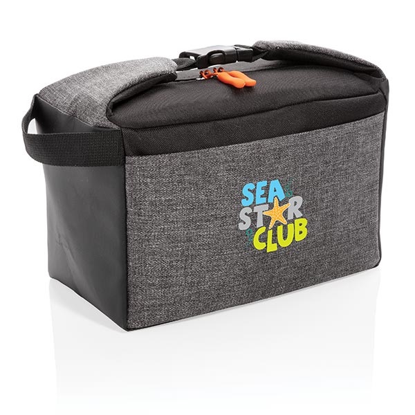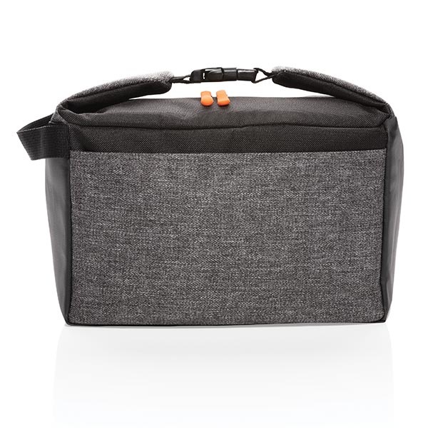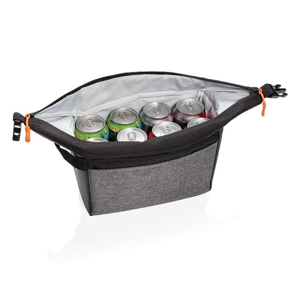 Termotaška zo štýlového dvojtónového materiálu. Priestor pre 6 plechoviek ponúka dostatok miesta pre nápoje i potraviny. Taška má predné vrecko, zapínanie na pracku a popruh na nosenie.