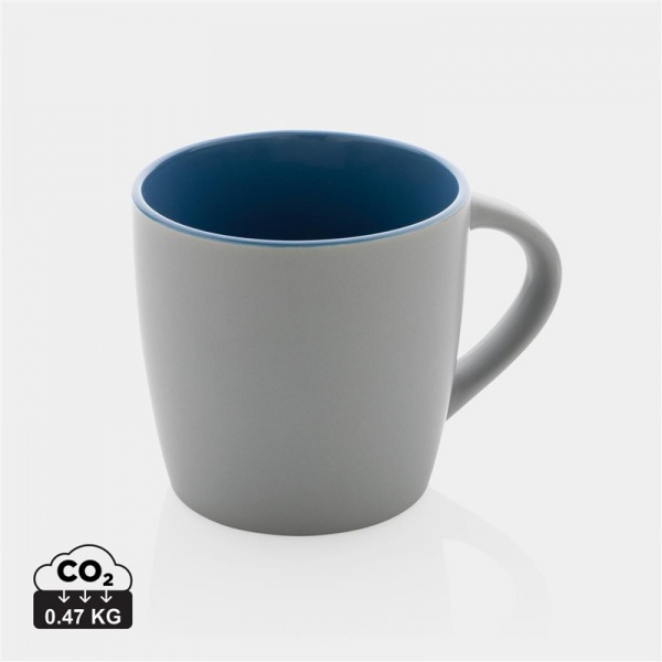 Svieži keramický hrnček s matnou vonkajšou a farebnou vnútornou časťou. Vhodné do umývačky riadu s odolnosťou až 125 umývacích cyklov pre akúkoľvek dekoračnú techniku (v súlade s EN12875-1). Balené v darčekovej krabičke. Objem: 300ml.