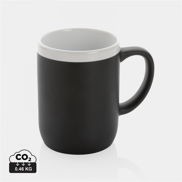 Keramický hrnček s bielym lemom. Matná vonkajšia, lesklá vnútorná časť. Vhodné do umývačky riadu s odolnosťou až 125 umývacích cyklov pre akúkoľvek dekoračnú techniku (v súlade s EN12875-1). Balené v darčekovej krabičke. Objem: 300ml.