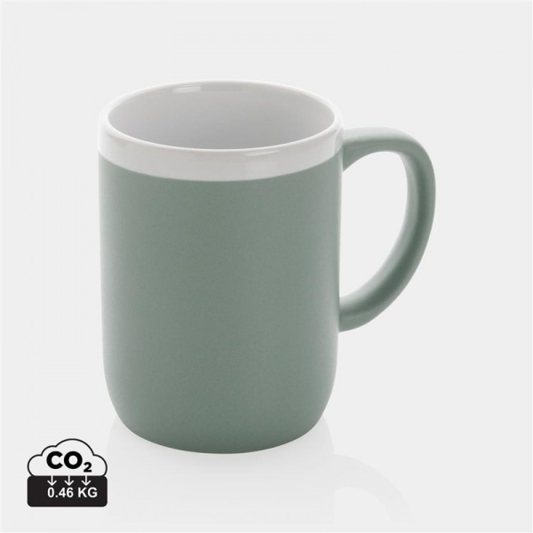 Keramický hrnček s bielym lemom. Matná vonkajšia, lesklá vnútorná časť. Vhodné do umývačky riadu s odolnosťou až 125 umývacích cyklov pre akúkoľvek dekoračnú techniku (v súlade s EN12875-1). Balené v darčekovej krabičke. Objem: 300ml.