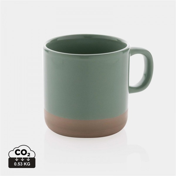 Keramický hrnček s glazovaným telom a prírodným vypaľovaným základom. Z dôvodu prirodzených rozdielov v použitej hline na výrobu, je každý hrnček unikátny. Objem: 360ml. Balené v kraftovej darčekovej krabičke.