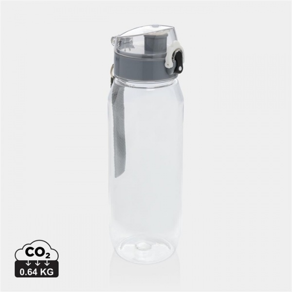 Fľaša na vodu s nepriepustným uzamykateľným uzáverom. RCS je globálny štandard, ktorý umožňuje overiť použitie recyklovaného materiálu. Podiel recyklátu: 73%. Len na studené nápoje a na ručné umývanie. Bez BPA. Balené v FSC® krabičke.